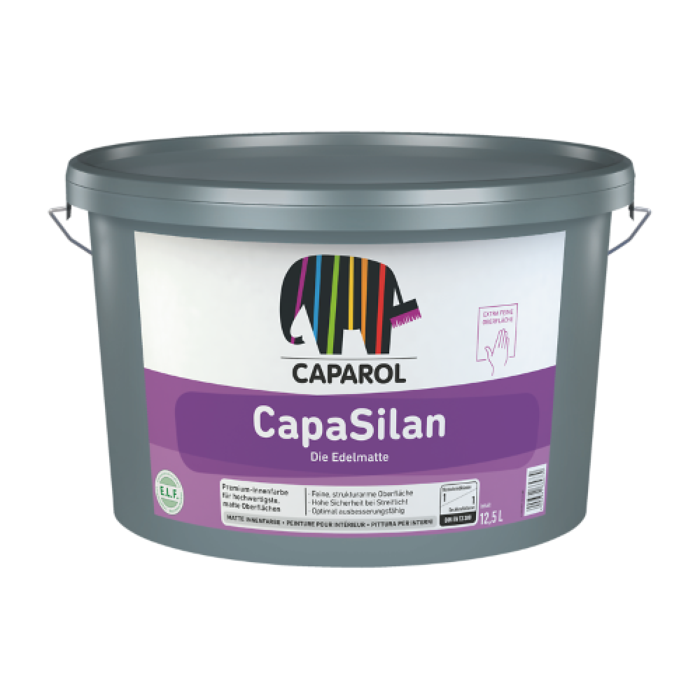 Caparol CapaSilan E.L.F. – це інноваційна силіконова інтер'єрна фарба, розроблена німецьким концерном Caparol. Вона є справжнім "рятівником" для великих поверхонь і приміщень зі складними світловими сценаріями, оскільки має унікально тривалий відкритий час роботи. Це дозволяє наносити фарбу без видимих стиків, переходів та слідів від валика, що критично важливо для глибоко-матових покриттів.